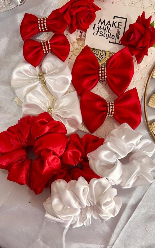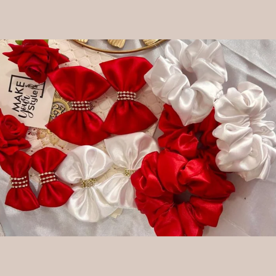 Red and White Scrunchies and Hair Bow