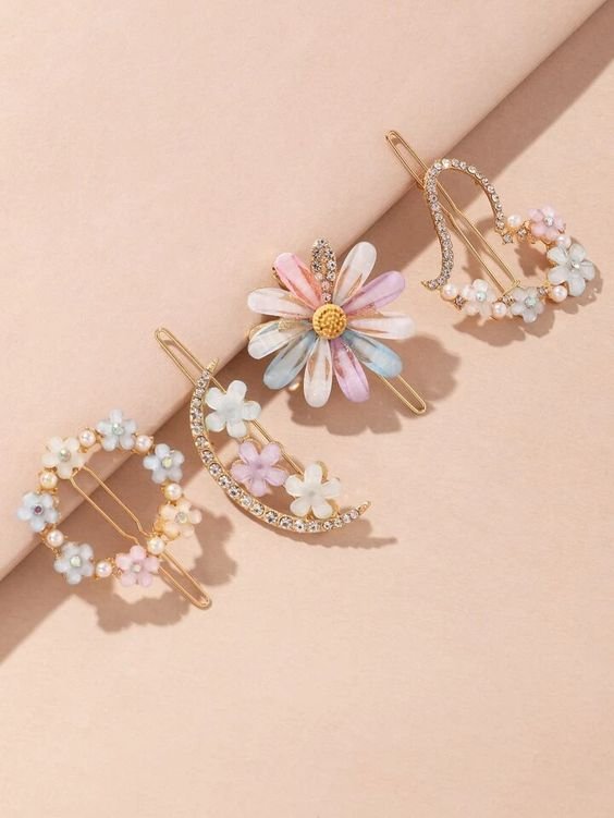 5 Pcs Rhinestone Decor Korean Hair Clips