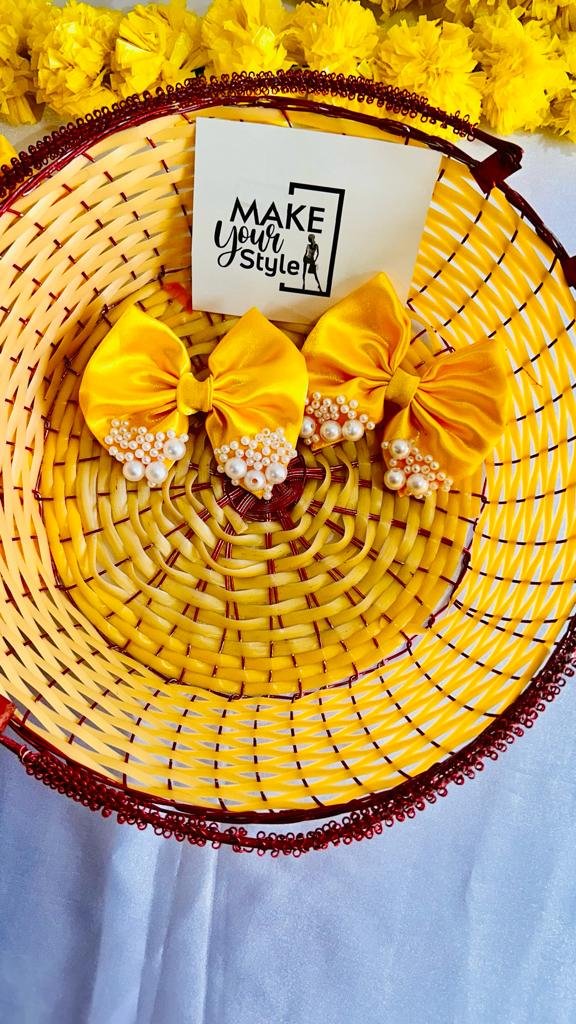 Yellow Color Pearl Hair Bow Clips for Women Pack of 2