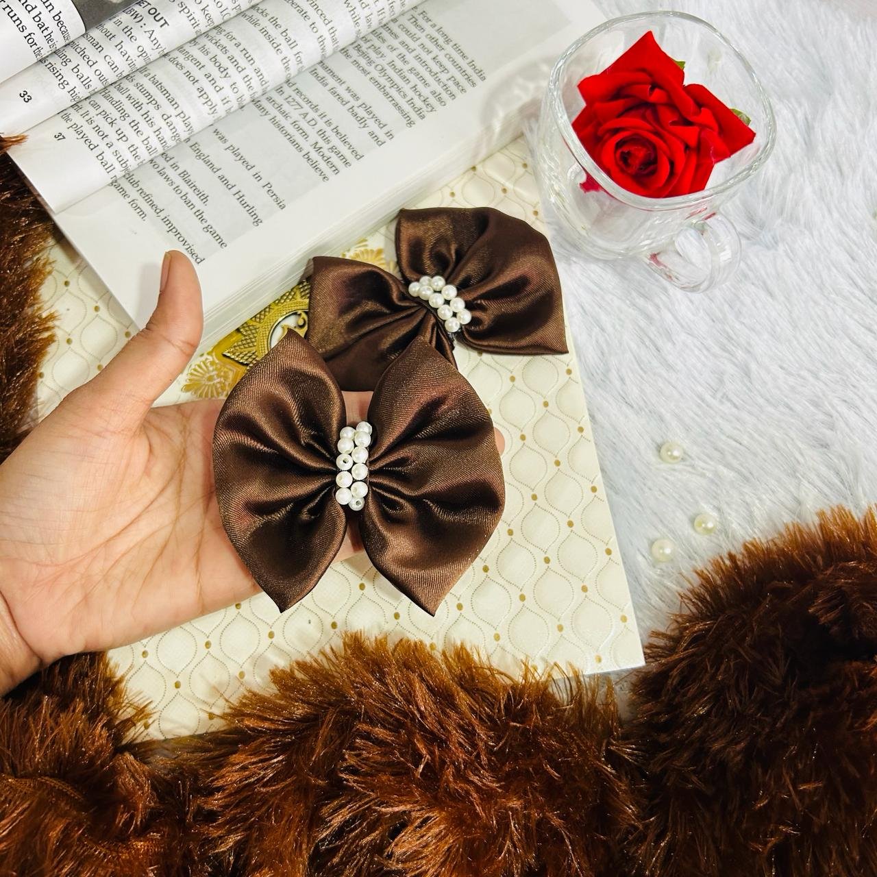 Brown Color Satin Hair Bow Pack of 2