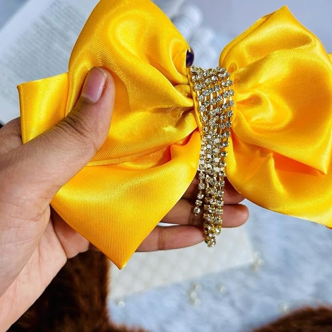 Satin Yellow Color Double Layer Hair Bow Clips