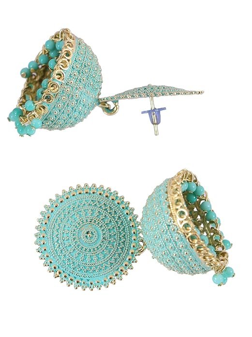 Aqua Blue Color Meenakari Jhumka Earrings for Women