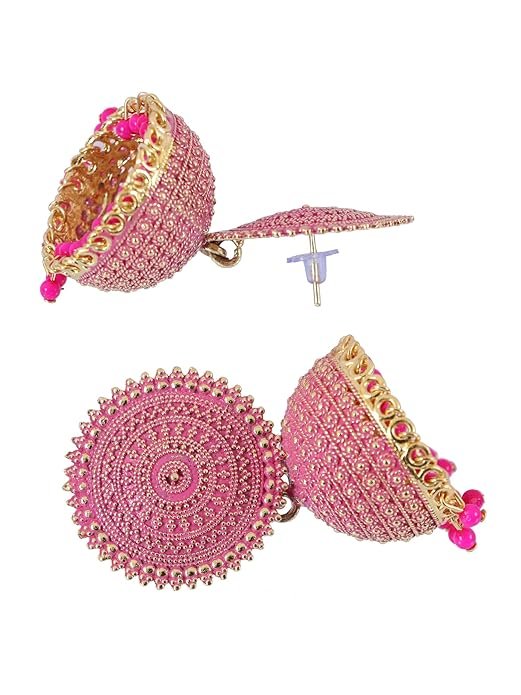 Pink Color Meenakari Jhumka Earrings for Women