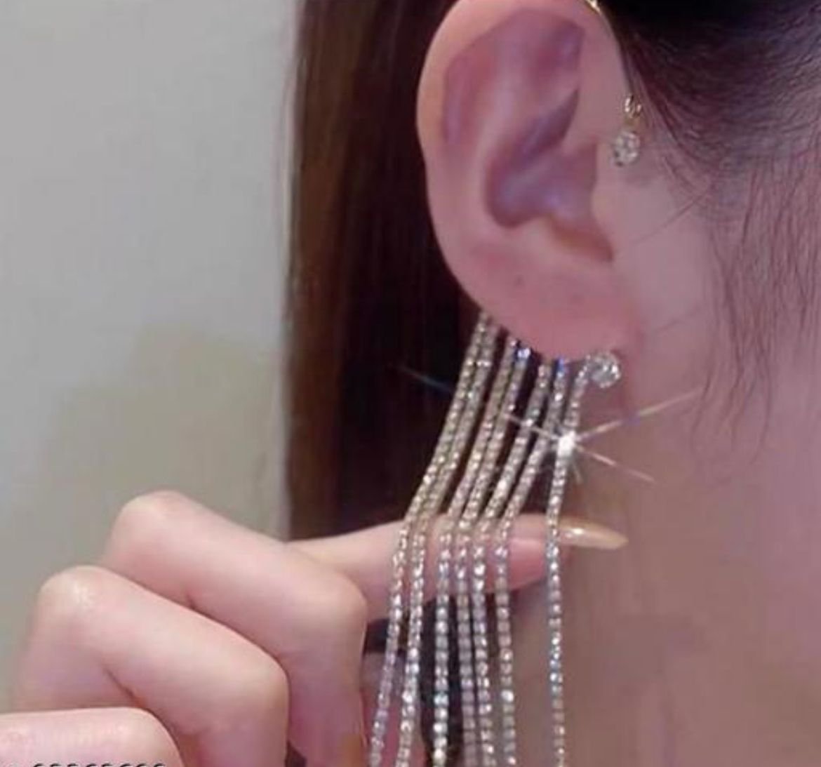 Korean Rhinestone Tassel Earrings for Women & Girls