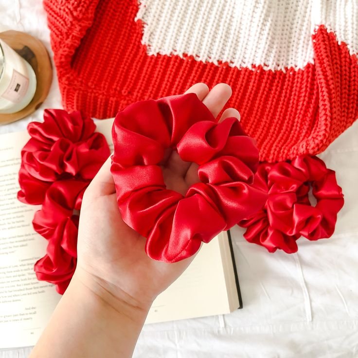 Red Color Satin Hair Scrunchies Pack of 1